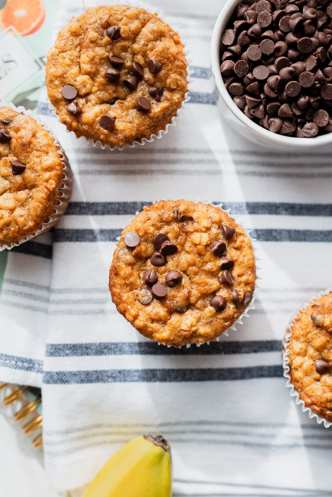 Cuisions de ce pas, des muffins aux bananes, avoine et chocolat noir!